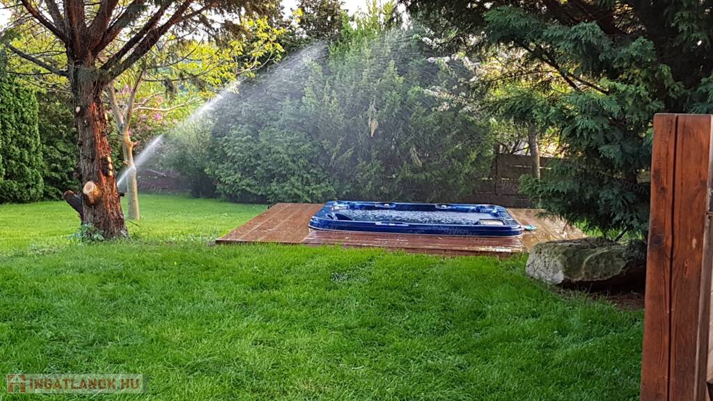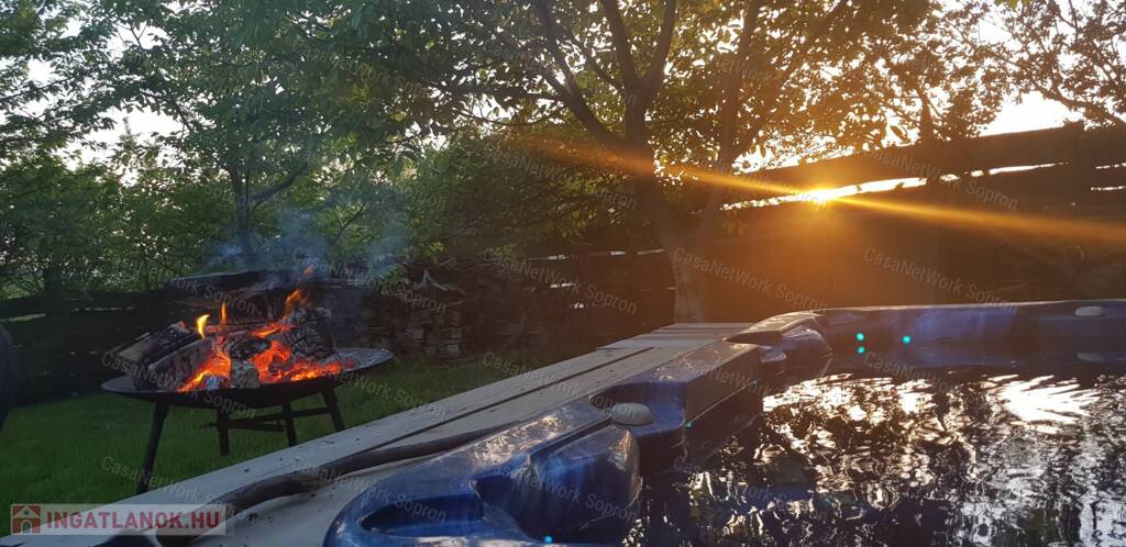 kerti jakuzzival, 899 m2 parkosított szép udvarral, nagy fákkal.